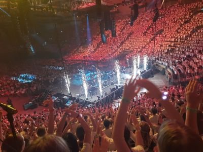 Am großen Tag schließlich war die Spannung spürbar, als sich die jungen Sängerinnen und Sänger in der imposanten Kulisse der Olympiahalle einfanden. Dort erwartete sie nicht nur eine riesige Bühne, sondern auch eine 20-köpfige Live-Band, höchst professionelle Licht- und Tontechnik sowie eine spektakuläre Showproduktion. Trotz tropischer Temperaturen bewiesen die Vilsbiburger Jugendlichen echte Leidenschaft: Sie sangen engagiert, konzentriert und mit spürbarer Begeisterung – gemeinsam mit Tausenden Gleichgesinnten.