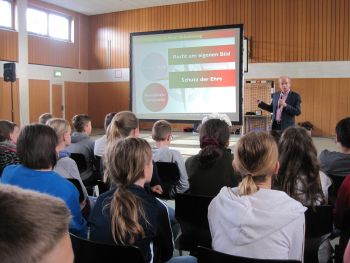 Es ist schon Tradition an unserer Realschule, dass Herr Bruno Lux unsere Schülerinnen und Schüler der 6. Klasse über die Risiken und Chancen der sozialen Netzwerke informiert. In einem zweistündigen Vortrag bringt er auf äußerst anschauliche Weise den Jugendlichen die möglichen Folgen ihres Handels im Internet nahe.